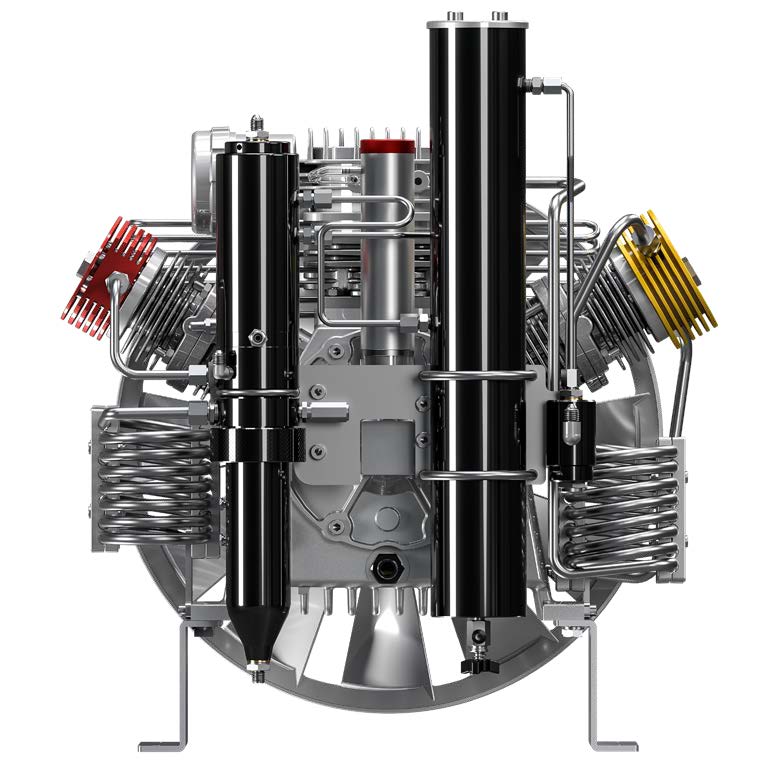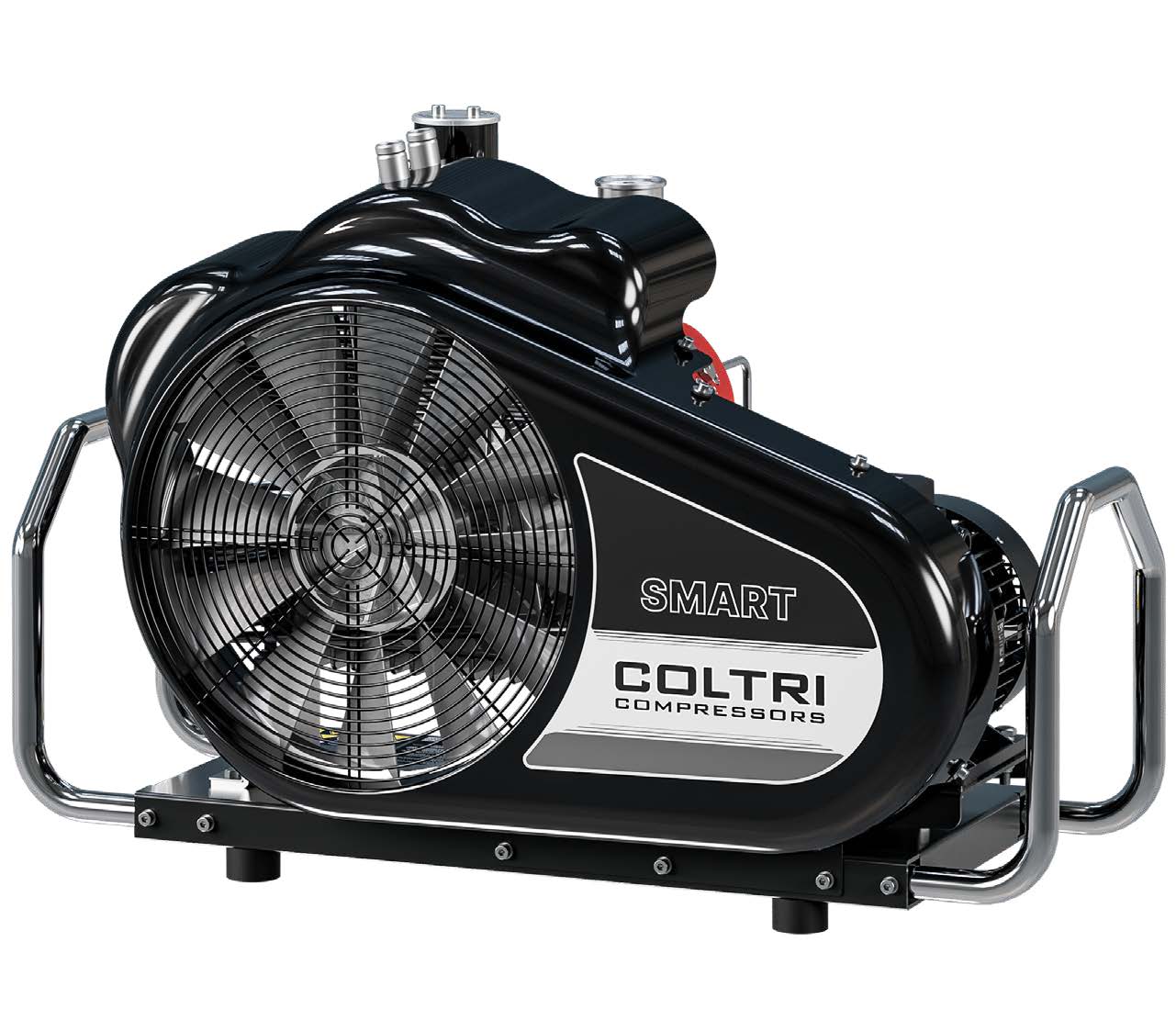 SMART breathing air compressors represent the evolution of the standard, one of the best known and biggest selling models in the world. They are equipped with two connections for high pressure hoses, a single or three phase electric motor, indestructible pumping units and a compact frame with handles for easier transport. Available options: external refilling panels, electrical display with automatic condensate drainage, and autostop pressure gauge.